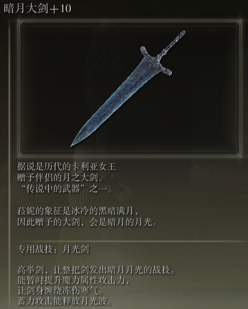 在艾尔登法环手游中,暗月大剑是菈妮的嫁妆,只能说月光大剑确实是老贼的执念,没有月光大剑魂系列似乎就不完整
