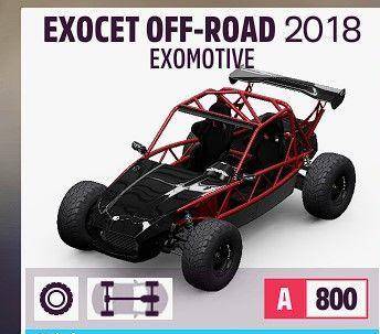 极限竞速地平线5泥地用2022款EXOCET车展汽车5万CR,此车既便宜又好用加速 操控都不错AT,MT也都无所谓,均衡的很。