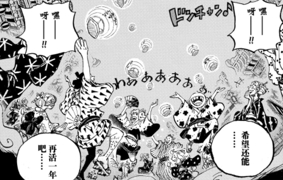 另一边,鬼岛上的城堡中,河松看到路飞和凯多的激战不由得回想起来二十年前的事情,当时凯多得知光月御田还有子女,所以就前往九里了结光月一家,还烧毁了御田城遗迹。之后,和之国的大名们举兵反抗凯多,但战斗惨败,百姓们也成为了凯多和大蛇的奴隶。