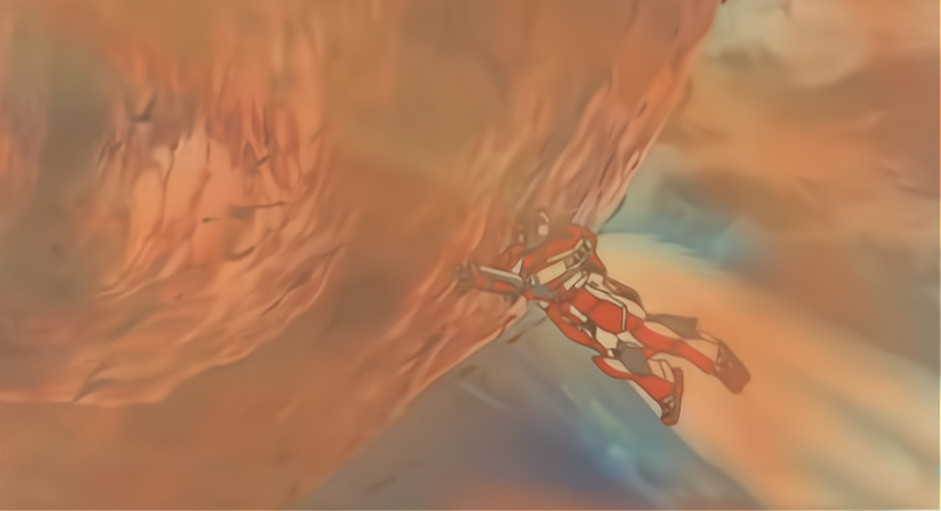 而在漫画最新的1048话中(暂时只有简单的文字情报),桃之助依旧在想尽办法制造火焰来阻止鬼岛下降。最后实在没办法,桃之助更是直接用推的,想靠自己的力量降低鬼岛掉落的速度,看起来就好像《机动战士高达 逆袭的夏亚》中高达推小行星一样。