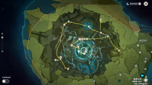 第十站点明冠峡和果酒湖,具体位置图,和路线如图。首先56号在悬崖下方的石头堆里面,打开石头就可以了。57号在所在位置的大树上面,需要从高处得下出才好拿到。58号在高空中,需要借助风场就可以够到。
