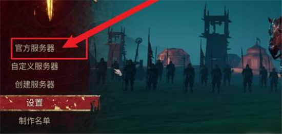 1、首先玩家需要在游戏主页中点击官 方服务器。