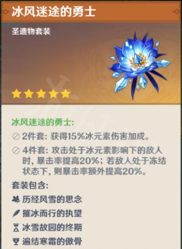 圣遗物的话也是有几种分类,首先是要把他当驻场主C的话,首推4冰,搭配重云和行秋,可以展现出不输五星的伤害,虽然没有惊艳的大数字伤害,但持续输出能力可是一点都不弱的。