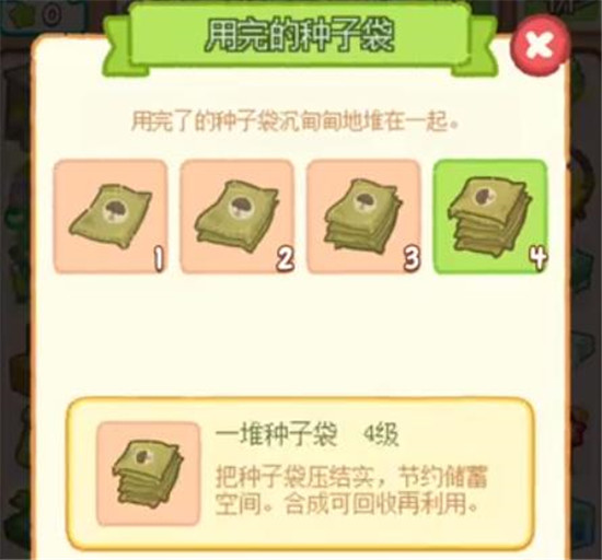 2、其实用完的种子袋也是可以合成一些全新的物品。