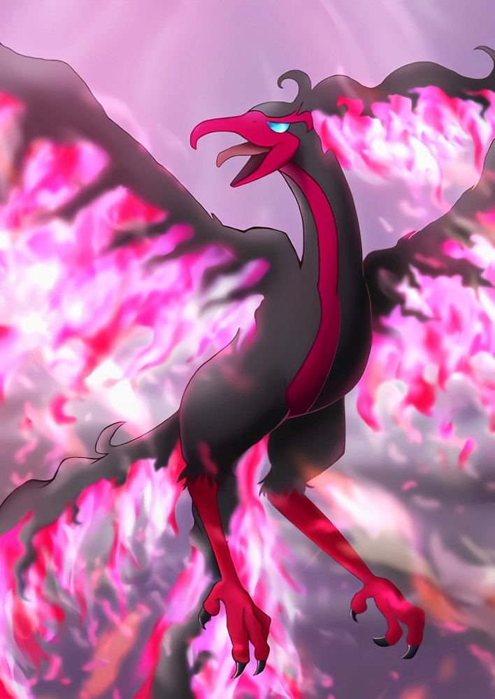 剑盾dlc冠之雪原出现的新的传说宝可梦,是火焰鸟的地区形态,拥有恶和飞行属性,简称“伽火鸟”,人称“小y神”。
