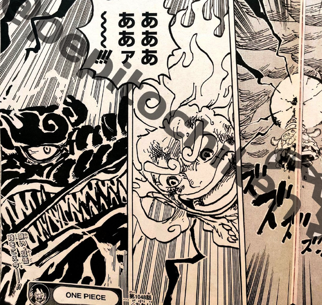 双方都用上了霸王色霸气,相撞的冲击炸开了乌云,将天空露了出来。本话在两人的僵持中结束。但整整一话只描绘了这两招,显然是把它们当作最后的大招来刻画的,因此下一话应该就是这场战斗的结局。