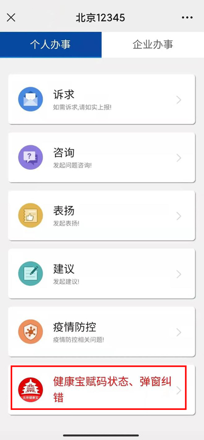 2、点击【健康宝赋码状态、弹窗纠错】。