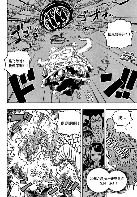 虽然说桃之助自觉没能力移走鬼岛,但是想到父亲、母亲和妹妹,他决定用尽全力移开鬼岛,好让路飞放手战斗。
