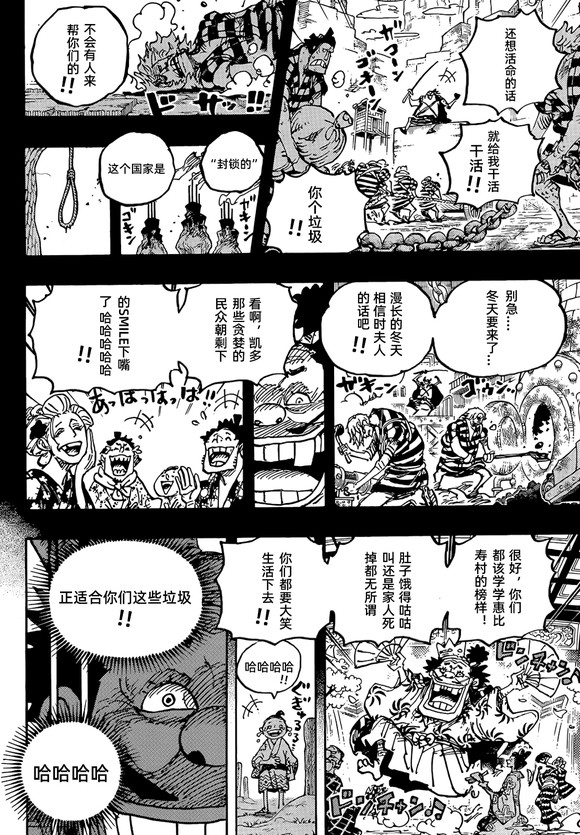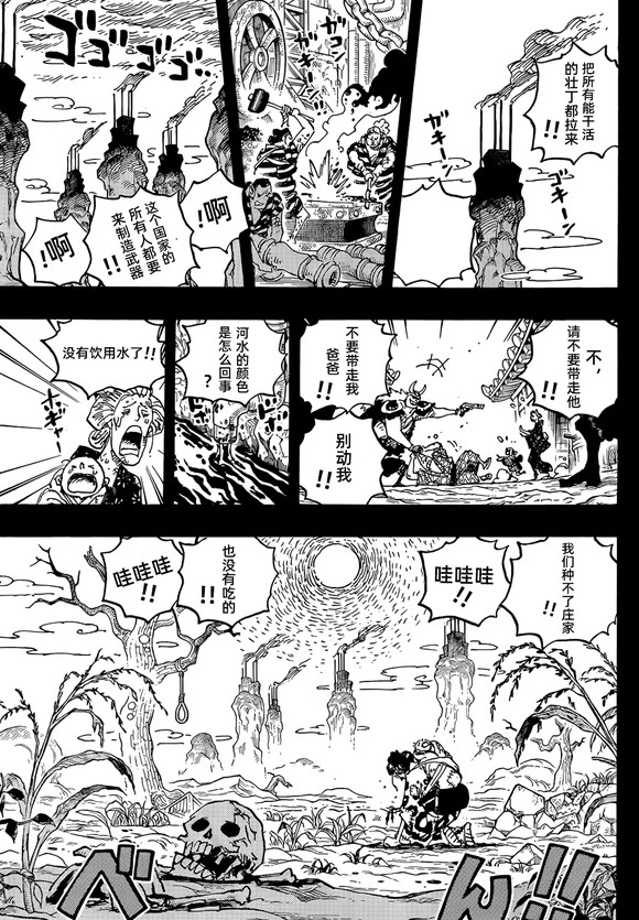 之后和之国的民众为凯多海贼团制造武器,而且因为工厂的污染,和之国的土地和水源都被破坏,民众生活在水深火热之中。
