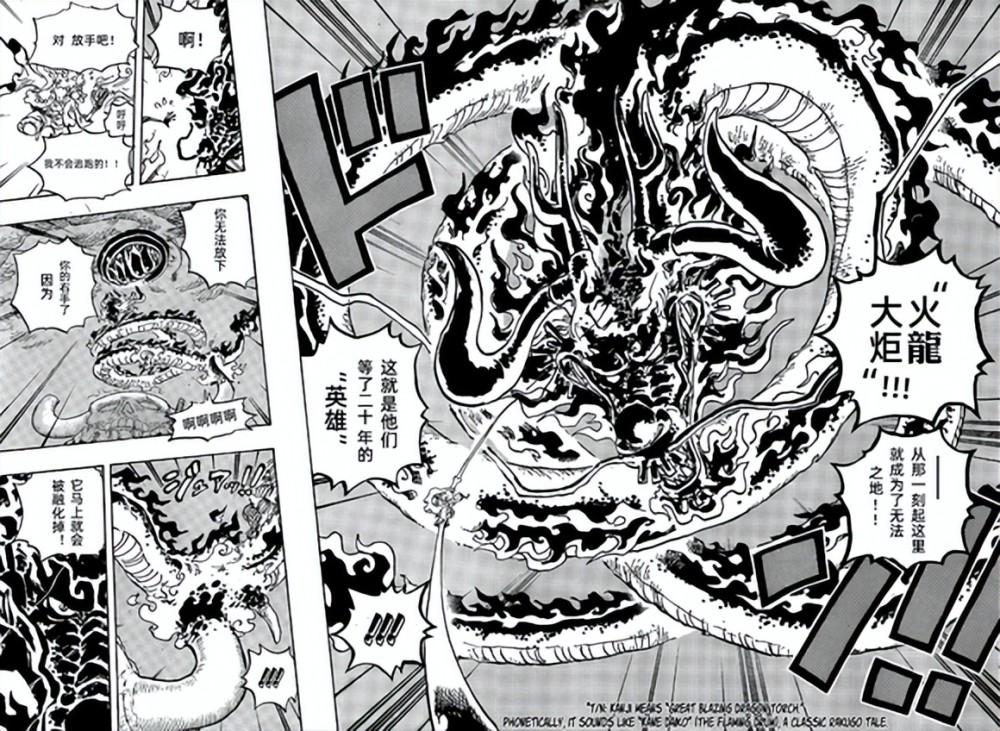 而看到路飞的巨拳,凯多准备接下来,而且他还说和之国的英雄在20年前被烧死。