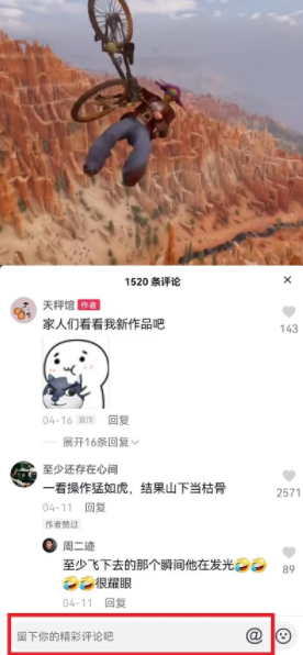 1、在抖音视频中的打开评论区,因为想要艾特只有通过作品的评论区;