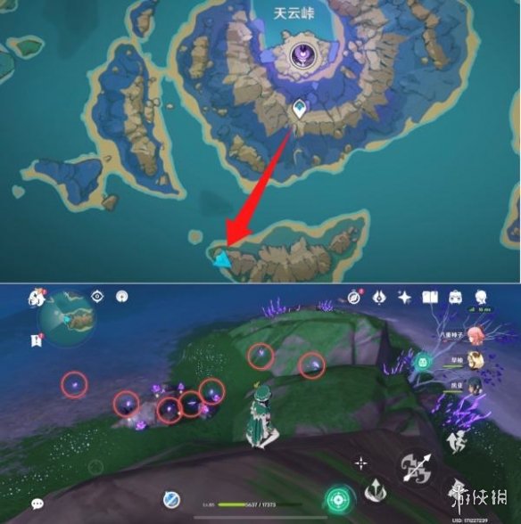 7.在天云峠地图最下方有7只晶蝶,此点位只推荐采集一次,比较远(长草玩家可以多来几次全部采集完)。