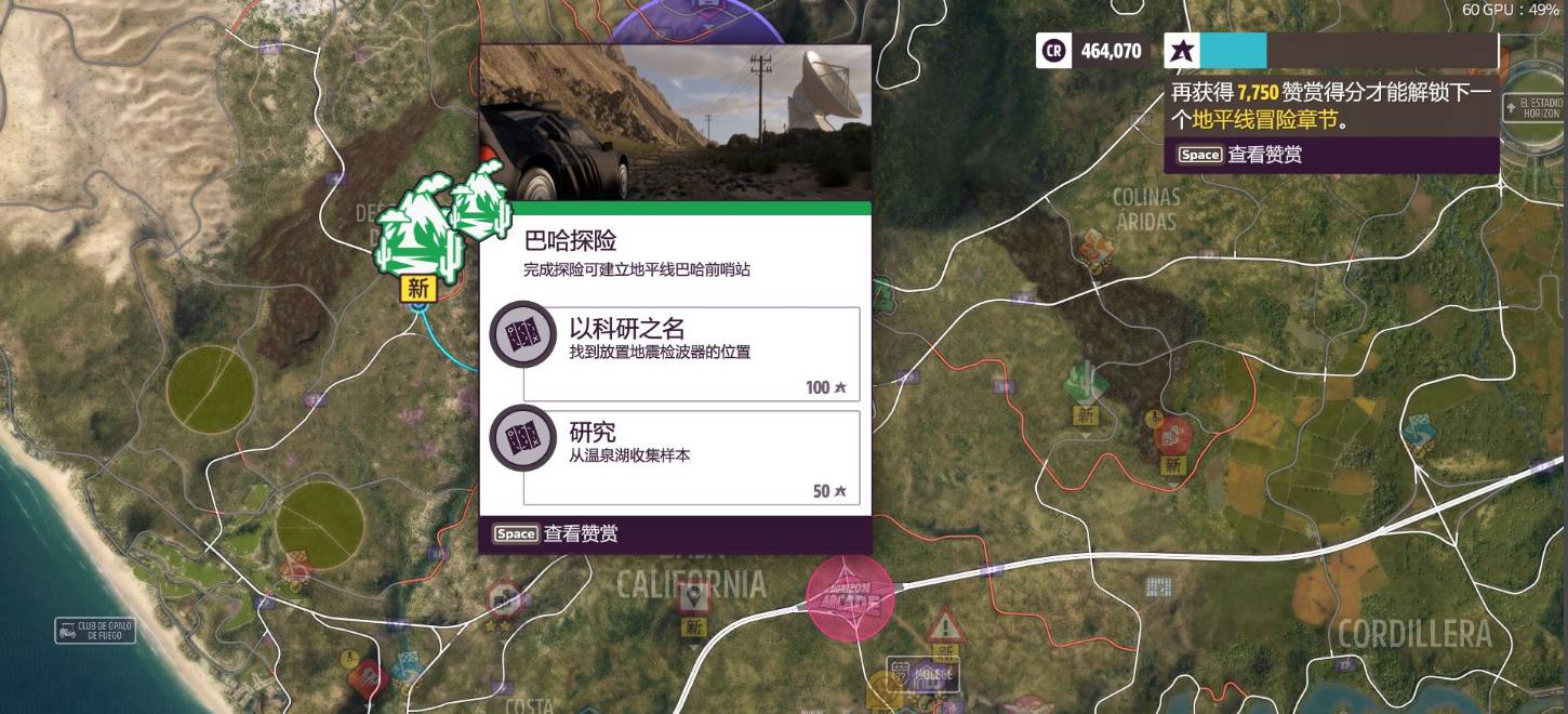 3、点击激活竞速赛内容,按M打开地图,查看激活新比赛即可激活对应比赛。