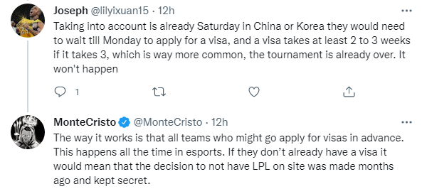 是这样运作的,所有可能前往MSI的队伍都要提前申请签证。这在电竞中经常发生。如果他们还没有签证,那就意味着LPL不在现场参加的决定是几个月前就做出的,并且一直保密。