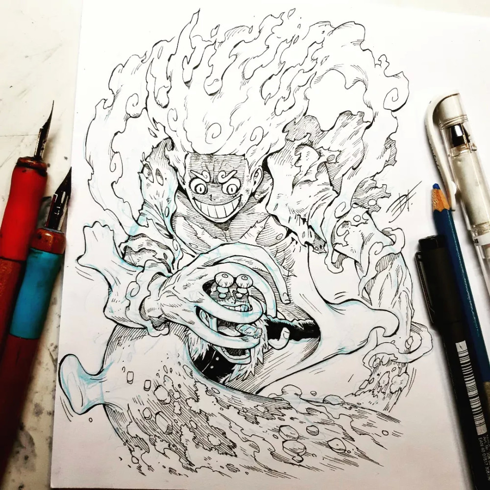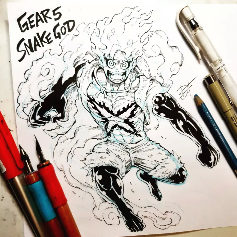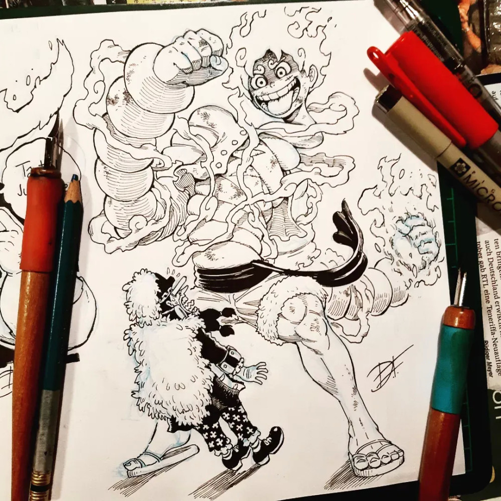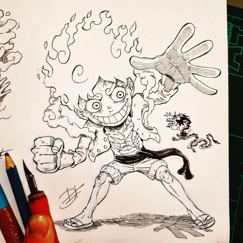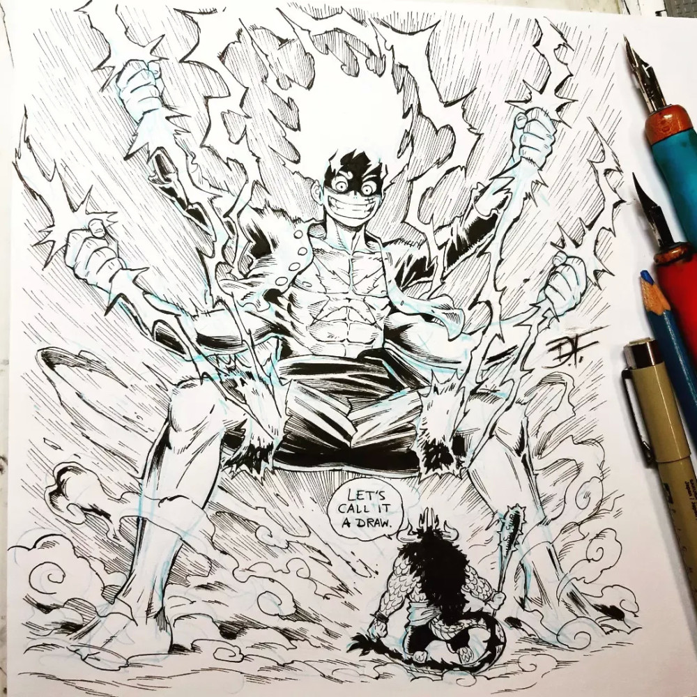 上面只是路飞本人的二次创作,要知道在这位画师的笔下,五档路飞就是“超神”般的存在。四皇凯多在五档路飞的面前如同“蝼蚁”一样渺小,与其说是一条神龙,不如说是一条小虫,看着两人之间的尺寸差距,已经感受到画师对凯多深深的“恶意”了。