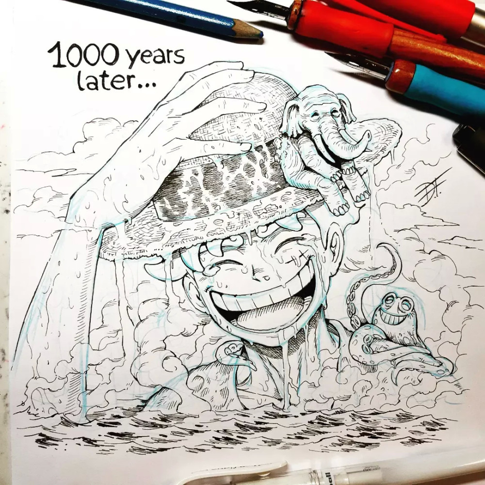 路飞的果实觉醒留下许多经典的名场面,这个状态下的路飞体型能够随意变化,而且没有上限,所以战斗起来给人一种非常滑稽的感觉。画师就利用五档路飞得“无厘头”进行二次创作,不得不承认,每一幅作品都值得让人细细欣赏。