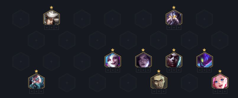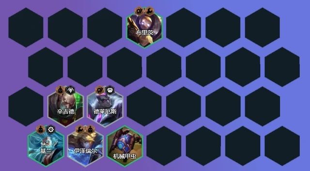 这套阵容后期主要玩的就是对位,携带冰心的艾克与螳螂绑定,找敌方C位,前排双传送门分开保护好后排棋子,希尔科的增加法力值可给卡莎与艾克,如果后期金克丝装备较好也可给金克丝让其快速释放技能。