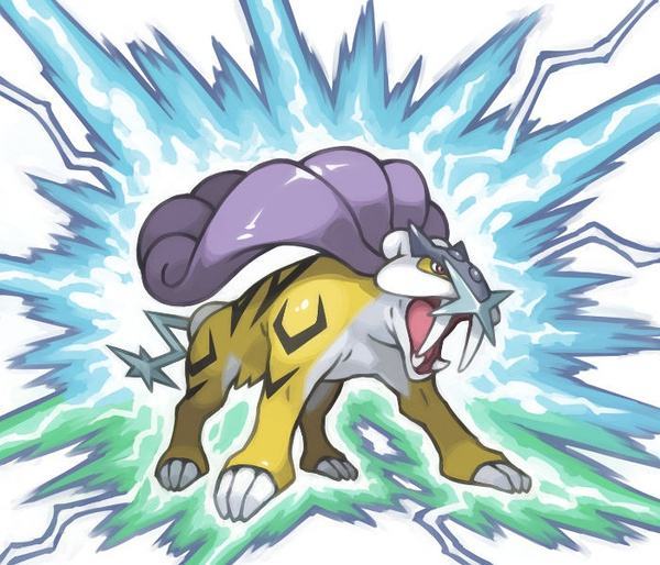 和闪电鸟一样,雷公也是电属性的神兽之一,在金银水晶版本中登场。和闪电鸟不同,雷公当初在游戏中可是随机在地图上游走的,当时要获得它可是费了一定的功夫。个人认为它是三圣兽中最为帅气的一只,不过实际游戏性能却没有另外两只强。特别篇漫画中,增加了它背后的披风可以变成雷云增强打雷效果的设定,假设如果能够嵌入到游戏中就好了。