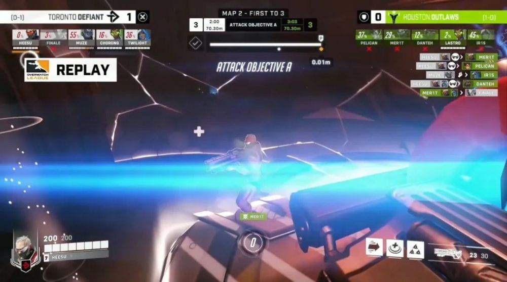 这两张地图神枪手连胜,让我一度以为又要重演之前赛季的3比1结果,但回顾后我发现,即便是直布罗陀的A惨,神枪手的胜点和之前的问题没有太多关系。先说国王大道,A点进攻是回声铁拳抢占二楼为MER1T去高台创造机会,配合LASTRO在小屋混战打满了DANTEH的伤害。我们可以看到IR1S几乎没有掉过血,自身能量却远比twilight更多。B点则是A点大招能量优势的延续以及回声体系强悍的具象表现。即便捍卫者同样拥有大量终极技能,CHORONG差百分之几开不出音障被杀,让双方在人格复制回合获得收益大相径庭。C点是铁拳重回打猩猩的基本思路,加上MUZE失误。血量不足的(特别是没有了护甲)的情况下强行抢拐角250血包的小通道,被快速集火打死后,神枪手激素开团,打出捍卫者人员返场的断档从而轻松的完成了推车。可是捍卫者为什么也能这么快的把第一轮车推完?是因为A点DANTEH空了两发关键的蓄力重拳,B点MER1T又绕后,而且同样被HEESU发现他开目镜后用螺旋飞弹将血量不好的MER1T秒杀。C段MER1T目镜前压被抱团的捍卫者反杀,同时给了FINALE源氏刷新机会。在漓江塔捍卫者更换猎空就开始贯彻一个方阵:不杀后排我就集火前排,总有一个能让你奶不回来。FINALE源氏的出现则加快了温斯顿收割人头的能力,另外,HEESU的目镜击杀收益真是比MER1T高了几倍。