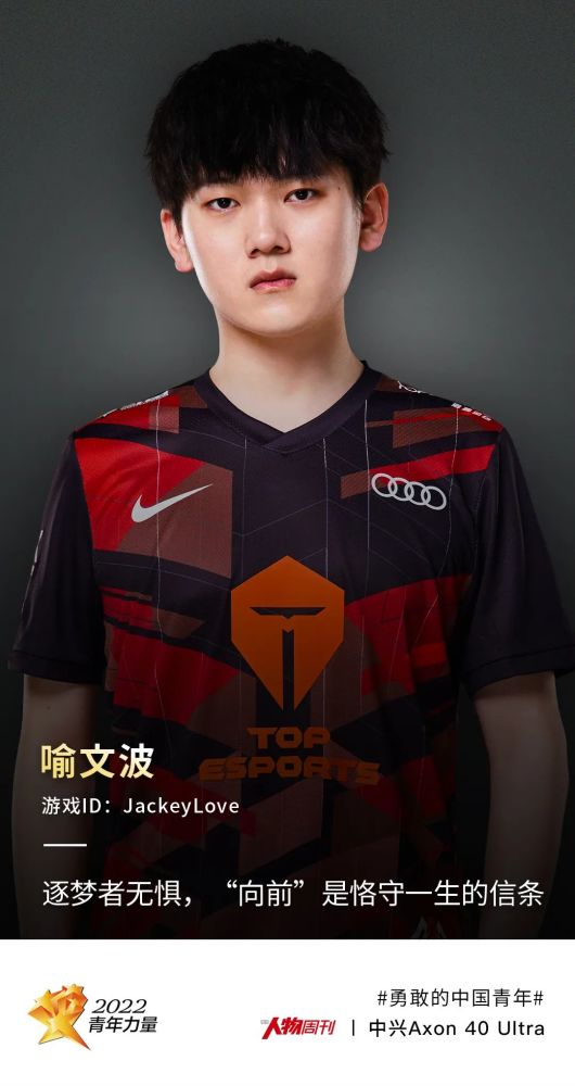 2020的TES战绩耀眼,迎来高光时刻的同时也让更多年轻人记住了背后的滔搏——这家扎根体育产业20年的运动零售运营商推崇拼搏、高效的精神,这种精神也影响着喻文波。同年,他以电竞人的身份当选《GQ》杂志的年度人物,对他的评语是:“JackeyLove依靠强劲对线能力、深英雄池和一颗大心脏,收获了梦幻般的职业生涯。”他自己也不否认,在拍摄电竞纪录片时表示,“我职业生涯还算比较顺,刚开始决定要打职业的时候就觉得自己应该不会打得很差,打到现在来说还算比较成功。”