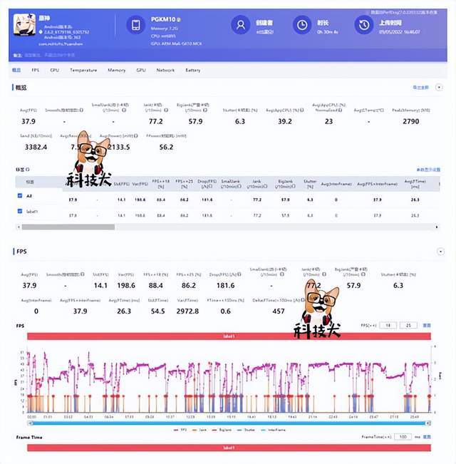 通过上述约30分钟游戏长呈现出来的帧率图表来看,游戏运行在约1分钟左右出现掉帧现象,此时科技犬正在进行第一个日常任务,在游戏中面对多个敌人后游戏人物释放技能进行战斗,此时画面出现较为明显的掉帧和卡顿现象,游戏约6分钟以后平均帧率在40fps左右,如触发战斗,游戏平均帧率达到了22fps,并且卡顿掉帧现象也频繁发生,是目前科技犬测试的搭载联发科天玑8100-MAX表现最差的机型(没有之一)。