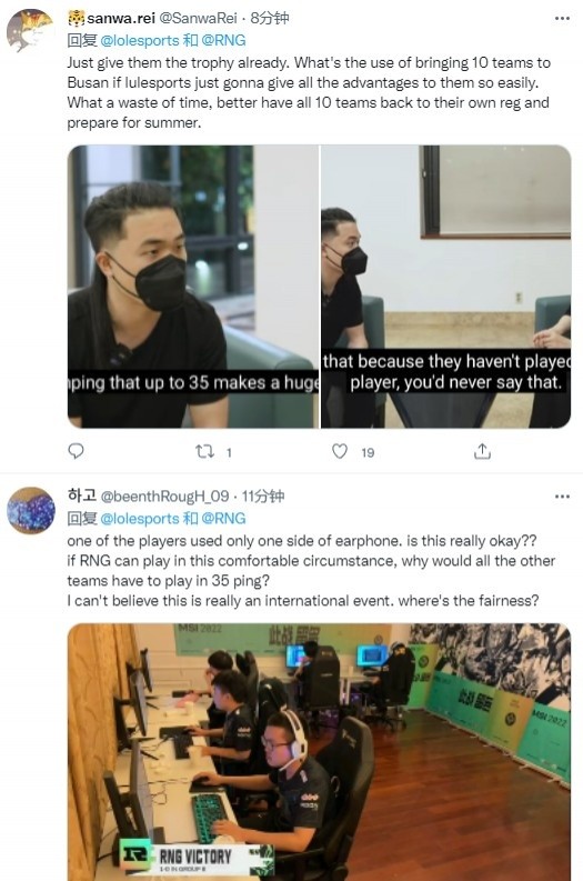 在昨天RNG拿下第一局之后,外网网友再次表达了他们的不满。