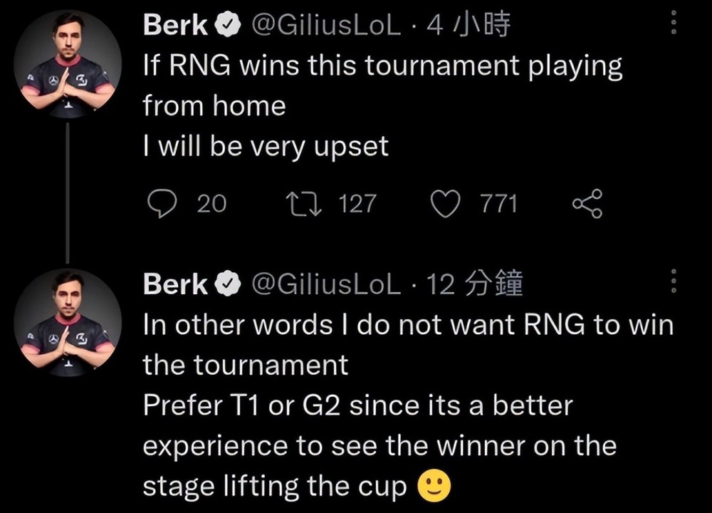 当然作为LPL观众,肯定是知道有些准备不足真的不能怪RNG,因为客观条件不允许,但是在其他赛区的网友们无法理解这些,甚至连LEC赛区SK战队的打野选手也出来发声,表示不想看到RNG夺冠。