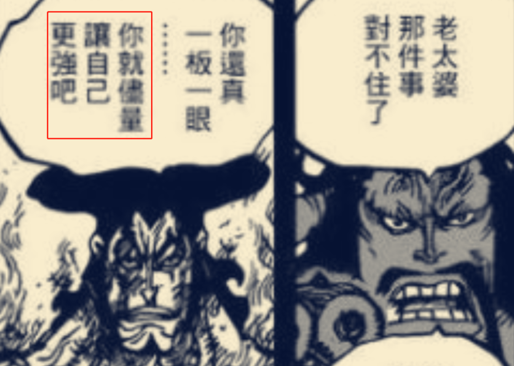 看到这里不知道大家是否好奇:“凯多是怎么知道乔伊波伊能打败他?”难道说凯多看过拉夫德鲁上记载的事情,不过从之前信息来看,凯多明显没到过拉夫德鲁,不然也不会和大妈联手要成为海贼王啊!