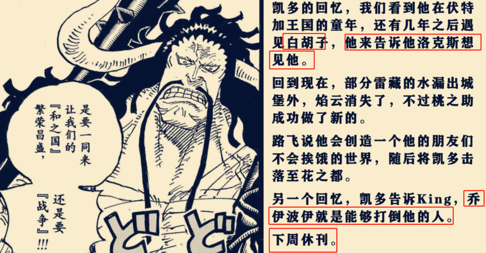 以上的两个推测导向的结果也都不同,我个人倒是偏向第二种,如果真是第一种,那么洛克斯这个人就太可怕了!至于真正答案,等后续剧情出来再看,感兴趣的也可以进行分析凯多知晓乔伊波伊打败自己的原因。