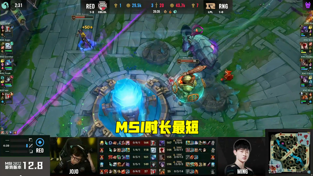 这场比赛可见RNG是真的生气了,脾气暴躁操作爆炸,仅用20分27秒就推平对方基地(先锋跳舞),比T1打AZE还要快(20分37秒),是本届MSI目前时长最短的一场比赛。即便GALA再次拿到五杀,釜山现场的观众还是鸦雀无声,和上一次用卢锡安拿到五杀一样。这么好的一个比赛场馆,怎么就变成图书馆了呢?不过没有关系,RNG只需要在基地捧杯就行。