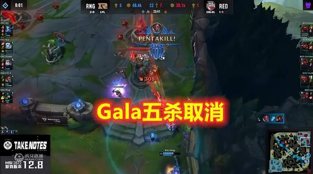 有意思的是,在与RED的再次交手中,Gala再度在对手身上取得了五杀壮举了。不同的是,上场Gala使用的英雄是卢锡安,这次使用的英雄是卡莎,但这也从侧面证实了Gala的顶级实力,即使是使用不同的英雄都能取得五杀。当然了,让人遗憾的是这一次Gala并没有再度打破MSI尘封7年之久的击杀纪录。不过Gala的这一次五杀再次向全球观众证明了尽管是重赛,RNG依旧势不可挡,Gala依旧是全球的顶级AD选手,在RNG的绝对实力面前,相信这回质疑RNG的人已经是没有什么可说的了吧?