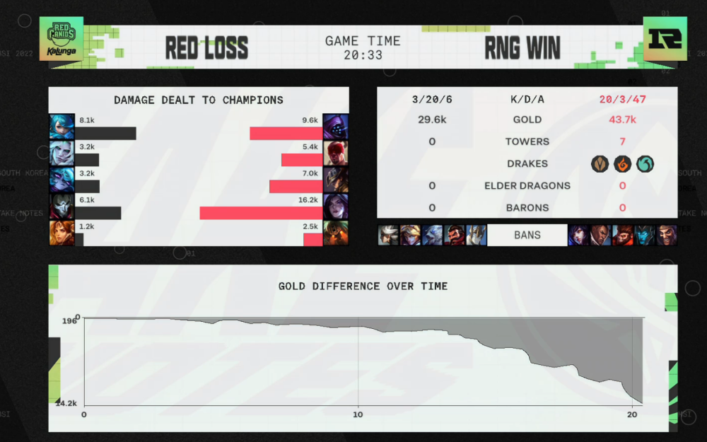 而第二场比赛RNG冷静下来,跟RED战队玩起运营,也是轻松碾压毫无压力!而在中期的一波河道团战中,GALA卡莎甚至再次收获五杀!
