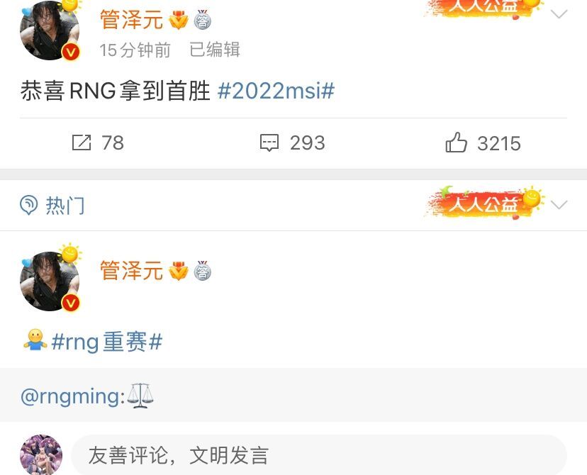 众解说发文力挺RNG:而在RNG重赛后,重新拿下首胜,LPL众解说们也是纷纷发文力挺RNG,具体如下:
