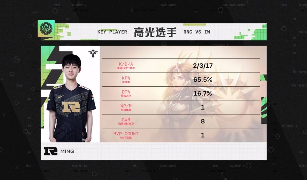 风光君赛后总结:回顾双方本场对战,可以说是以RNG的碾压之势取胜,但双方血腥程度拉满,基本全场都在打架大乱斗,而在整体的实力领先下,RNG也是轻松取胜,小明拿下实至名归的MVP;