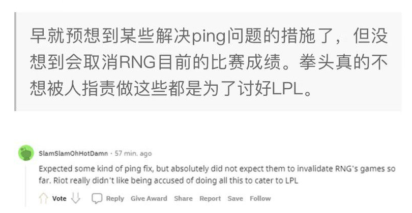 -早就预想到某些解决ping问题的措施了,但没想到会取消RNG目前的比赛成绩。拳头真的不想被人指责做这些都是为了讨好LPL。