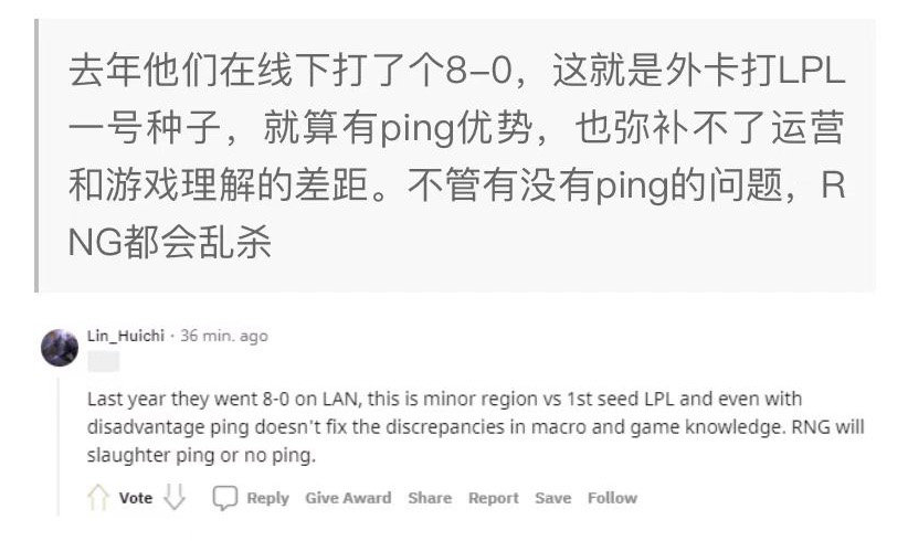-去年他们在线下打了个8-0,这就是外卡打LPL—号种子,就算有ping优势,也弥补不了运营和游戏理解的差距。不管有没有ping的问题,RNG都会乱杀