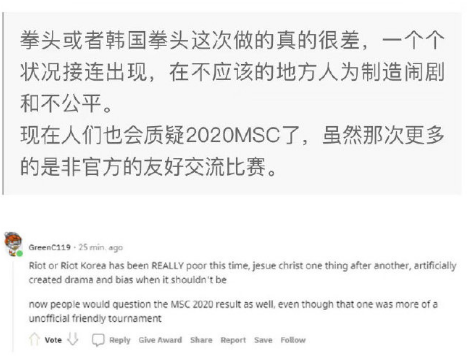 -拳头或者韩国拳头这次做的真的很差,一个个状况接连出现,在不应该的地方人为制造闹剧和不公平。现在人们也会质疑2020MSC了,虽然那次更多的是非官方的友好交流比赛。