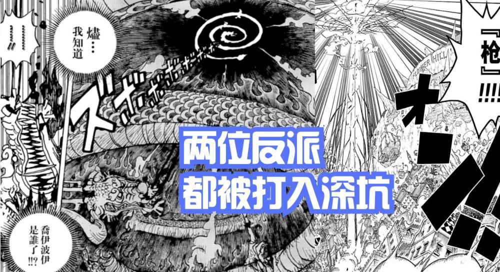 明哥被路飞的拳头打倒地面上,将无数建筑摧毁,让明哥撞击在各式各样的建筑而落败;凯多被路飞从半空打入深坑(这个深坑不是罗之前弄的,而是路飞通过冲击形成的坑),仔细观看上面的细节,有一条龙的印记,这就是冲击力太猛而产生的。