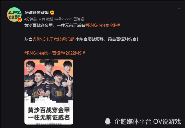 本来在我们LPL观众看来波澜不惊的MSI季中赛小组赛,在宣布RNG需要把小组的前三场重赛后,所有的LPL观众都在为RNG抱不平。但是今天RNG在打完全部的“9场小组赛”后,以华丽的9-0战绩证明“重赛又如何,实力做不了假”!