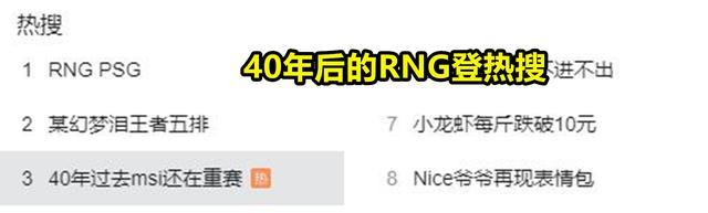 “40年后的RNG”登榜热搜,玩家调侃:RNG一直不输比赛,已经重赛到2062年了