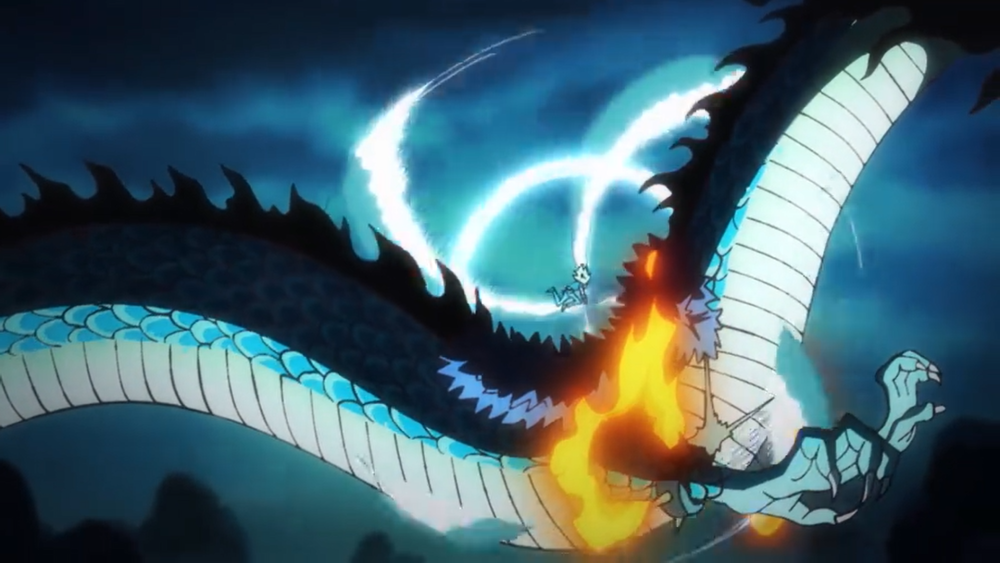 最后以路飞的“猿王枪乱打”结尾,“to be continued”字样的背景里便增加了路飞的乱拳,就像拳头对着镜头打过来一样,也有些新意。按照漫画的剧情发展,下一集依然是双方的战斗,凯多的还击就要来了。