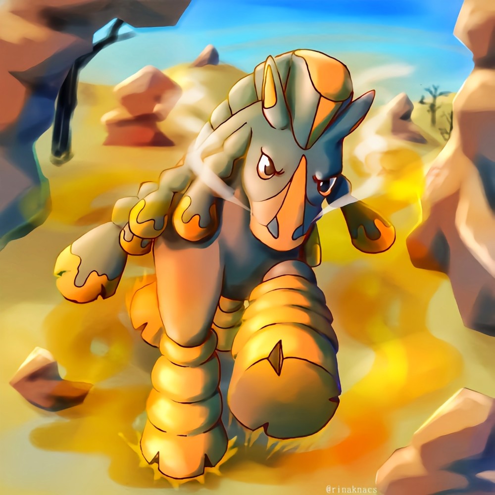 重泥挽马是以拥有强壮的身躯和面对任何事也处变不惊的精神力而广为人知的宝可梦。在任何紧急关头它也不会发出鸣叫,而是以强力的一击将对手击倒。