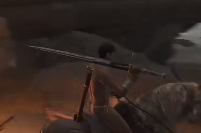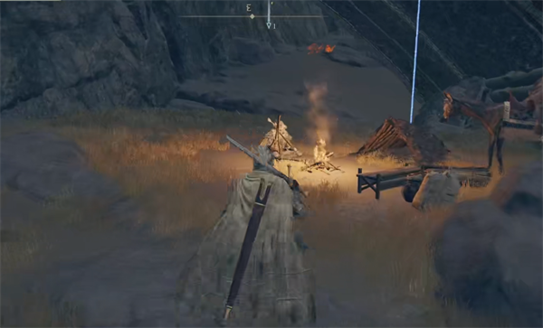 3、跳到最下面的时候,可以在下面转转,然后会发现一个商人在篝火旁;