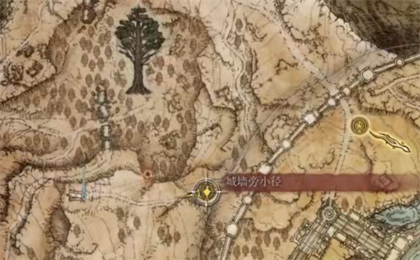 1、黑刀的位置在城墙旁小径的西边,下图蓝色标注点位置;