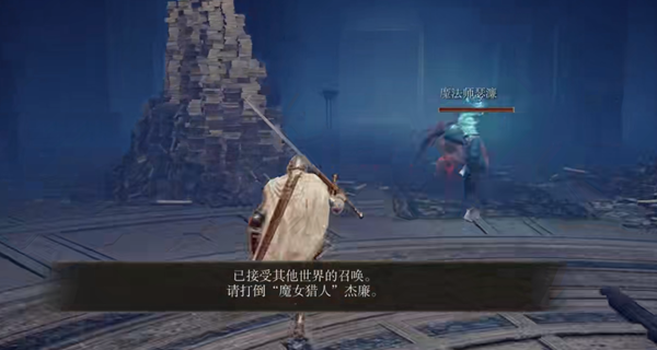 9、来到【雷亚卢卡利亚大书库】的门口和地上金色印记互动召唤瑟濂,然后击败魔法女猎人;