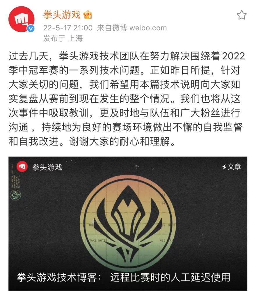 拳头的公信度已经受到质疑,希望接下去的MSI能够顺利,不要再有更多的舆论,至少针对LPL方面的舆论影响可以少一点。起码在官推上能够好好放RNG的图片。