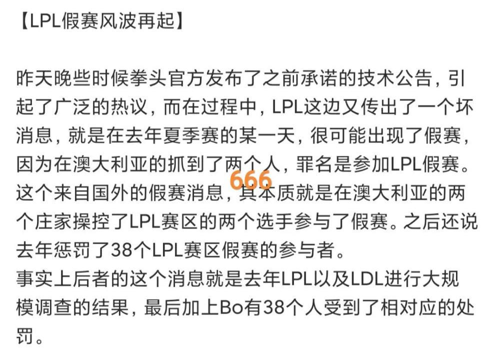 在这样一个非常关键的节点,lpl赛区再次出现了假赛的问题。这让很多的玩家都非常的不满意。甚至很多的粉丝都表示,这是不是拳头官方弄出来的消息,不偏不正,非要在官方道歉的时候出来假赛吸引大家的注意力。Lpl赛区假赛的处理力度真的太低了,这也是为什么很多的职业选手都选择铤而走险,毕竟对于那些没有知名度的选手来说,一场假赛甚至要比他们职业生涯挣得还多。