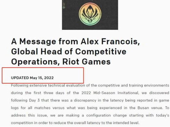 MSI季中赛小组赛已经圆满落幕,今年MSI季中赛还是比较特殊的,尤其是对于LPL赛区的网友以及代表队RNG战队,小组赛中RNG加上重赛前的成绩,最终九连胜结束了小组赛之旅,然而小组赛发生的事情,也持续至今,前不久22延迟一事官方也是给出了简单公告,并承诺后续会出详细公告,这不前不久拳头关于延迟详细公告发出,废话不多说,赶紧随我去看看吧。