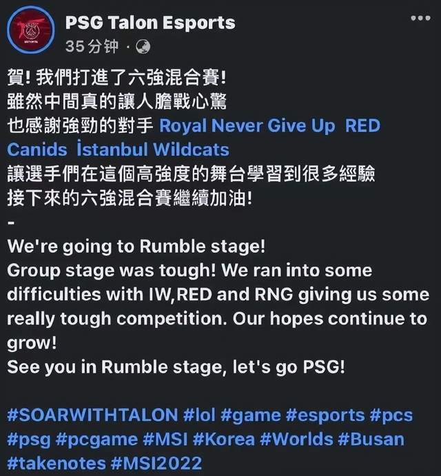 这次PSG战队发的内容就是首先庆祝自己进入了下一轮,并且感谢了前面遇到的那么多强队,然后挨个圈了一下,第一个就圈了RNG,看到这个内容之后,网友们坐不住了,直接吐槽了一番,因为大家还记得之前的节奏,所以没那么快就原谅他们。
