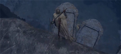 2、想要进入沟壑,通过突出的石碑一点点的下去;